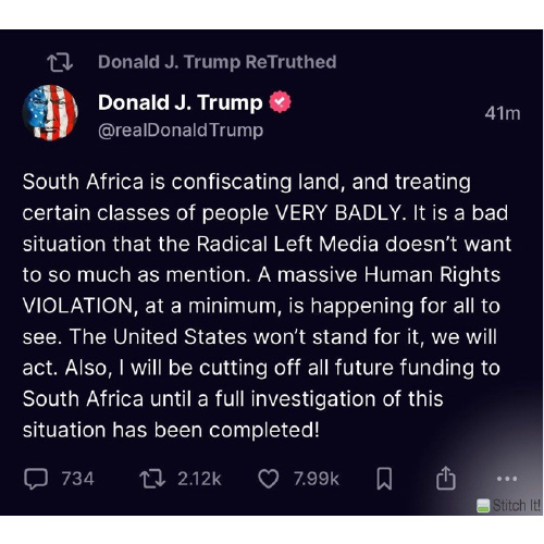 On Monday 3rd February President Trump announced plans to cut all future funding to South Africa pending an investigation of land confiscations designed to affect “certain classes of people VERY BADLY.” The class of people Trump was referring to are the white farmers of South Africa now under threat from the recent introduction of a new Land Expropriation Act, signed into law by President Cyril Ramaphosa, which allows for expropriation without compensation (EWC).
